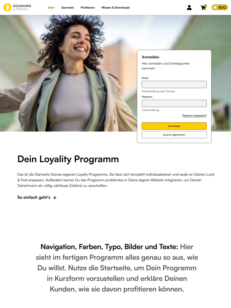 Goldmarie ist die Boutique Agentur für Loyality Programme. Über unsere eigene Plattform führen wir dein Loyality Programm zum Erfolg.