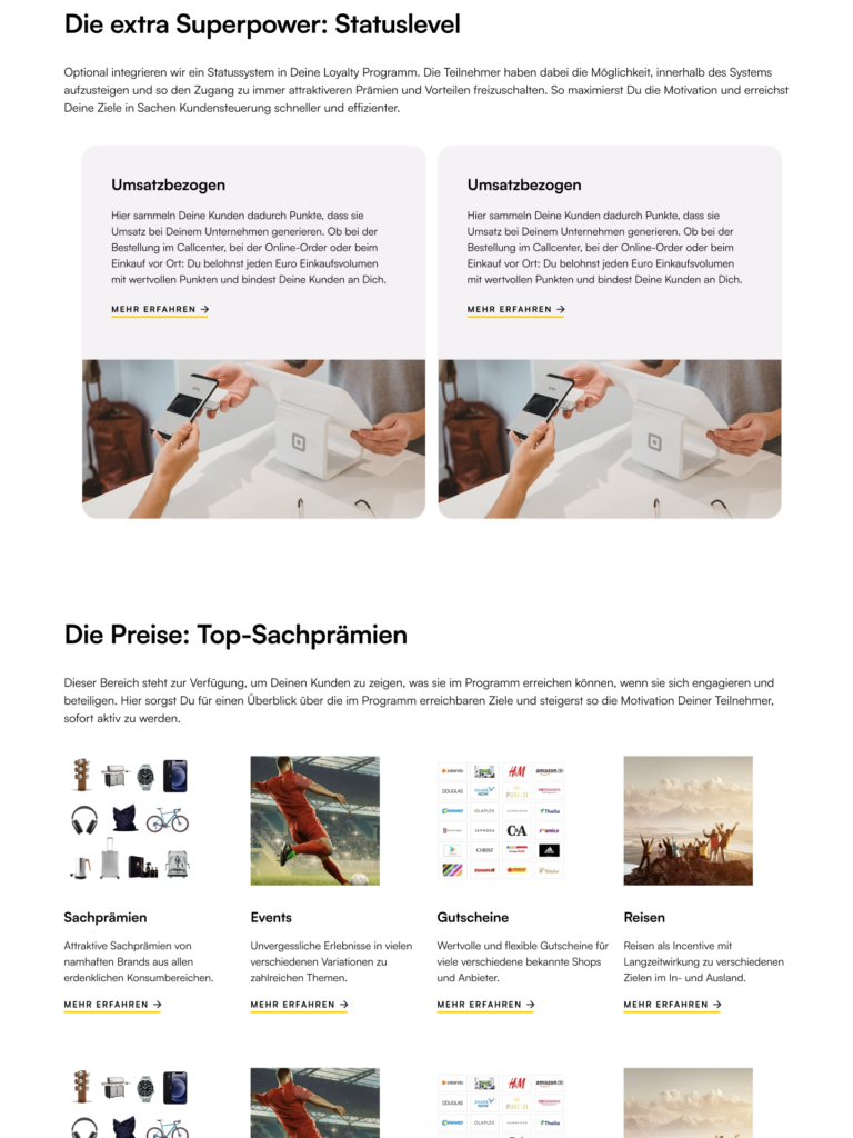 Unsere Loyalty-Programme sind effizient, schlank, agil, wirksam und günstig. Und sie leisten auch in Deinem Unternehmen Erstaunliches: